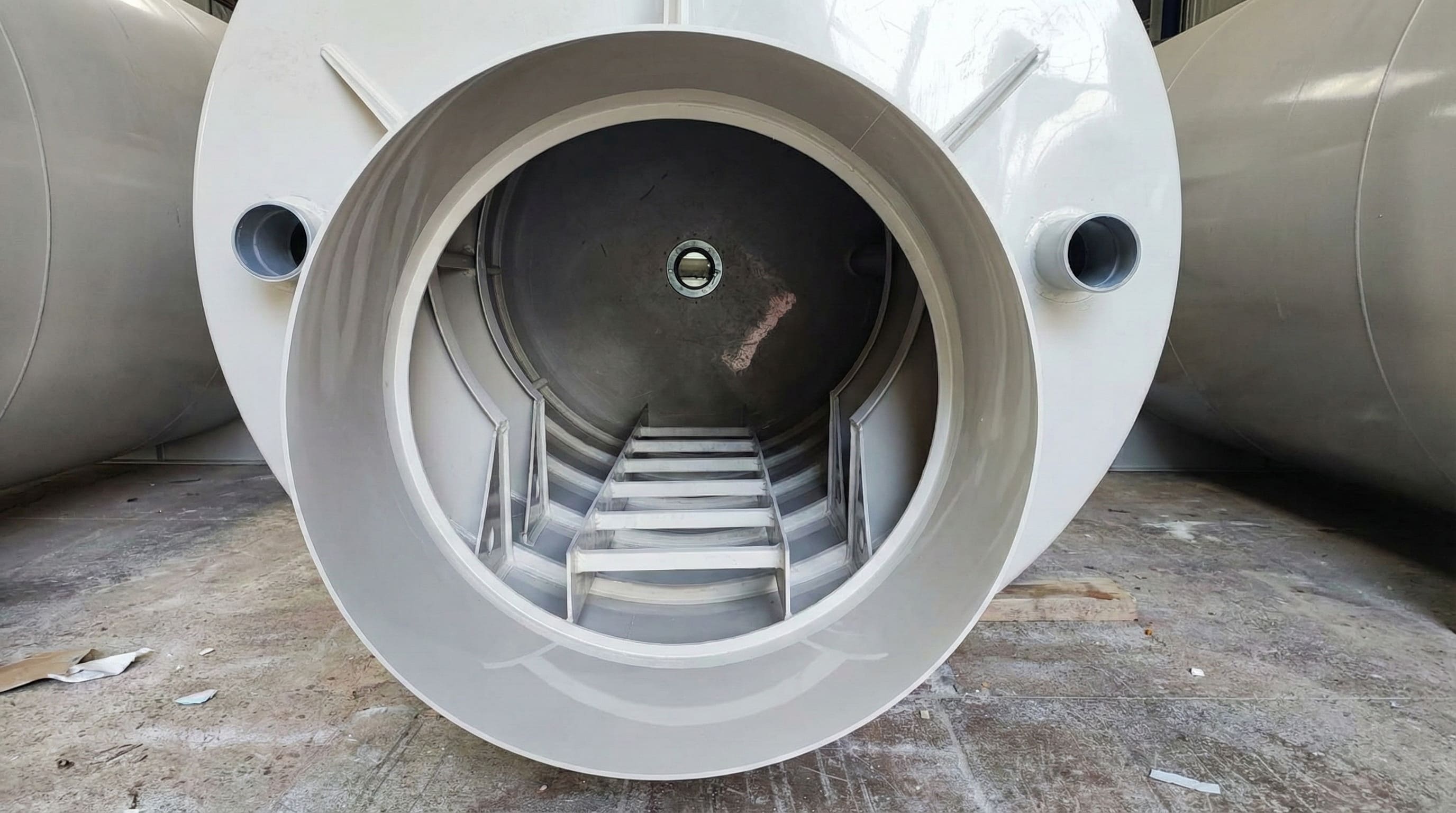 Рабочая камера выполнена из первичного монолитного полипропилена толщиной 8–10 мм — прочного, пластичного и полностью устойчивого к коррозии, гниению и воздействию агрессивных сред материала.
